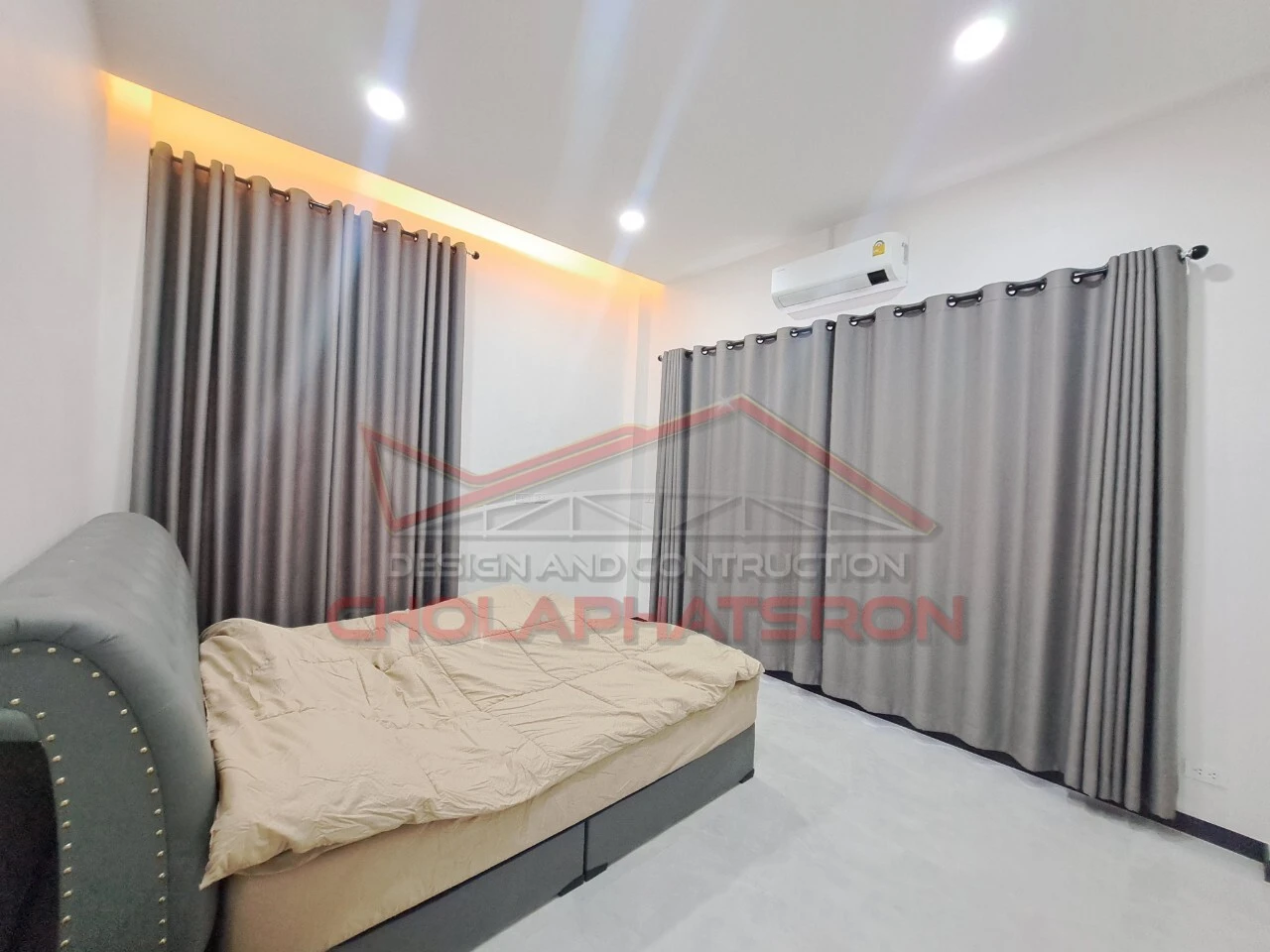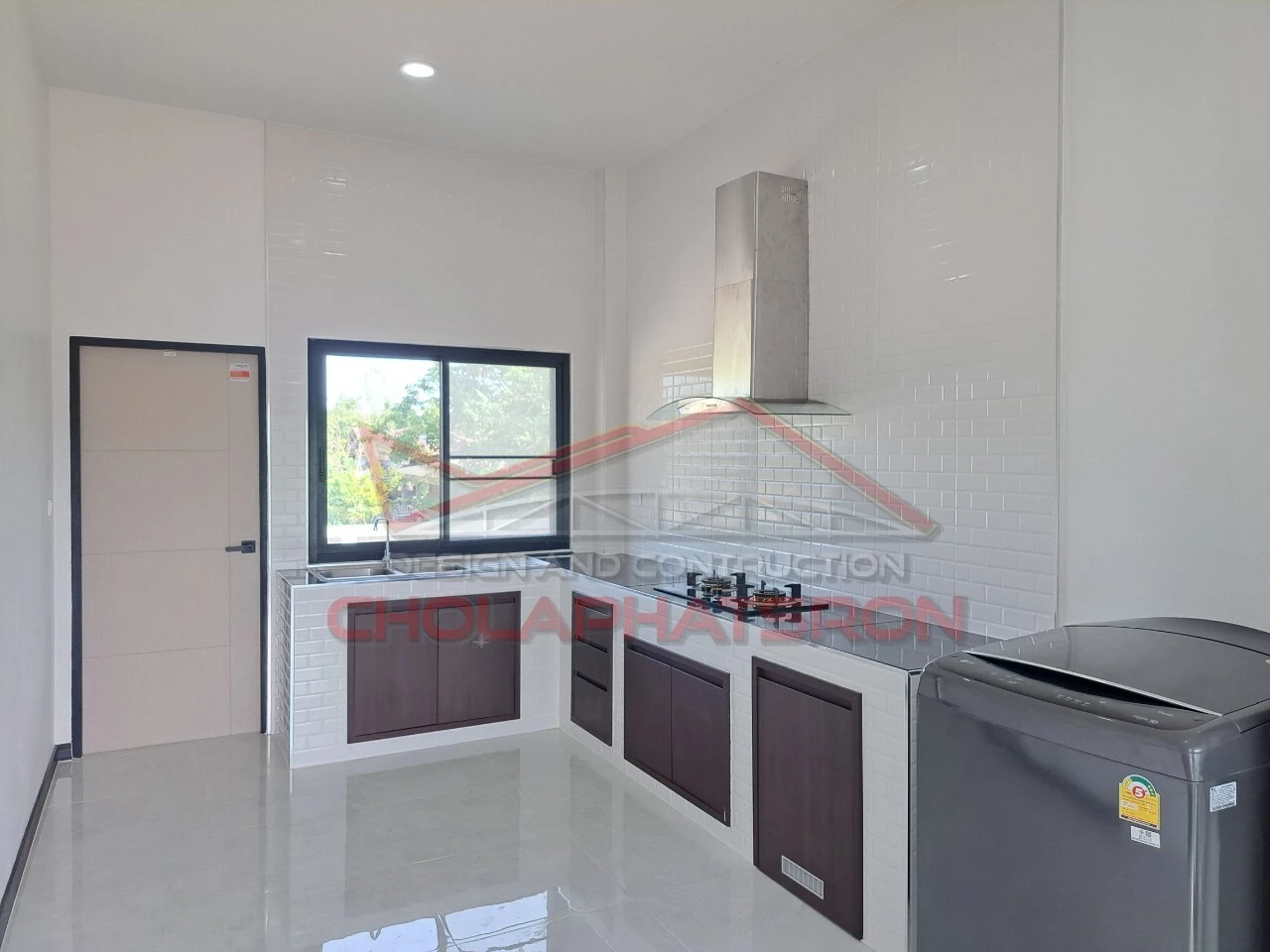 พื้นที่ใช้สอยภายในบ้าน 125 ตร.ม. 3 ห้องนอน 2 ห้องน้ำ 1 ห้องโถง 1 ห้องครัว 1 ห้องเก็บของ 1 โรงจอดรถ