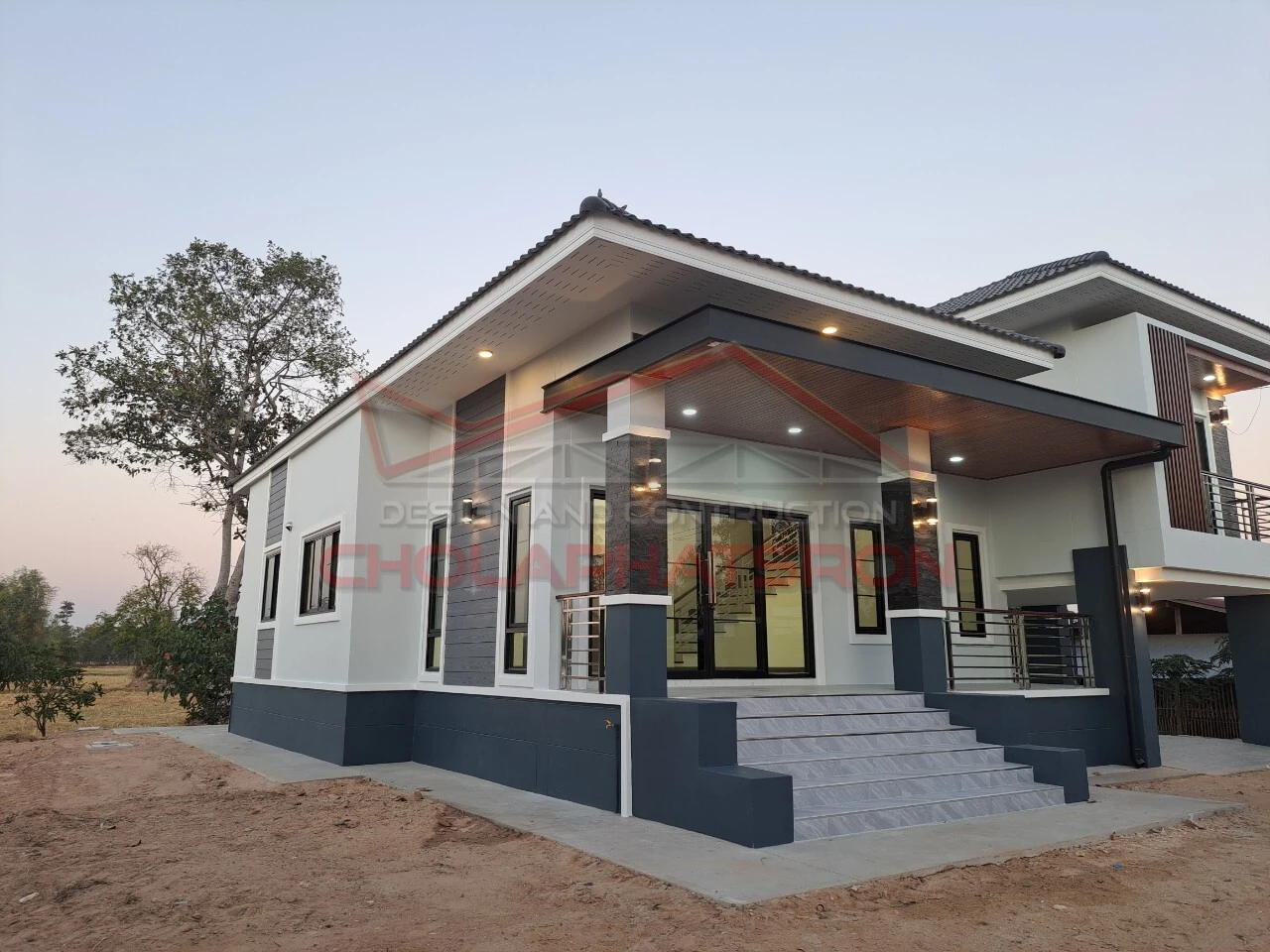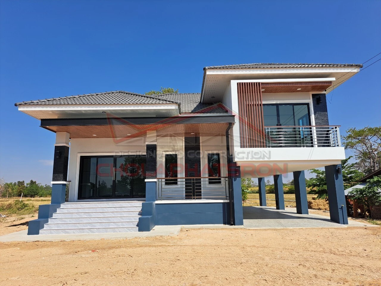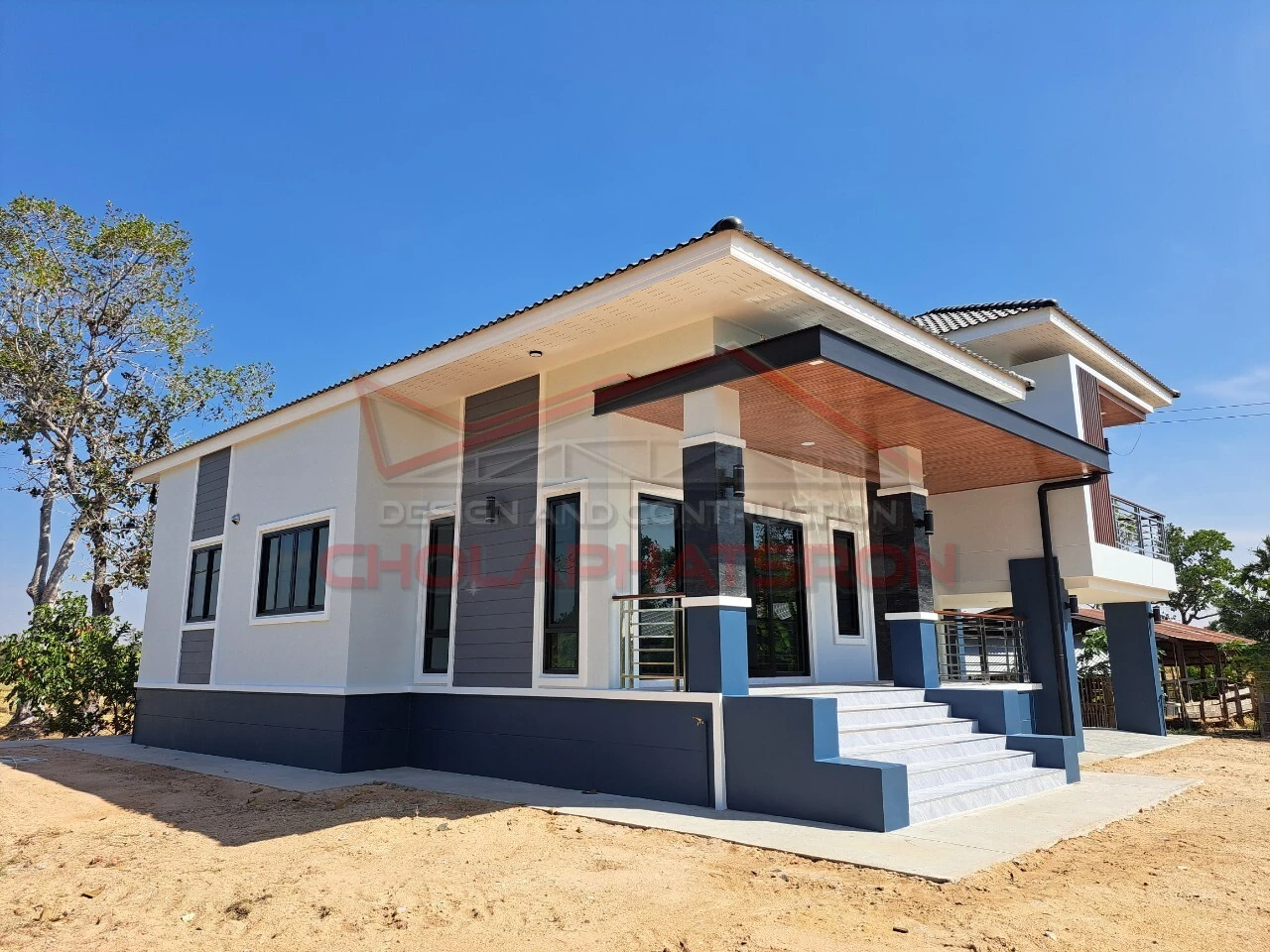 บ้านชั้นครึ่งสไตล์โมเดิร์นร่วมสมัย พื้นที่ใช้สอยภายในบ้าน 140 ตร.ม.และพื้นที่ จอดรถ 40 ตร.ม. ห้องโถง 1 ห้อง ห้องนอน 3 ห้อง ห้องน้ำ 2 ห้อง ห้องครัว 1 ห้อง จุดเด่นของบ้านคือห้องโถงที่กว้างขวางสามารถนำเฟอร์นิเจอร์จัดวางได้ตามใจผู้อยู่