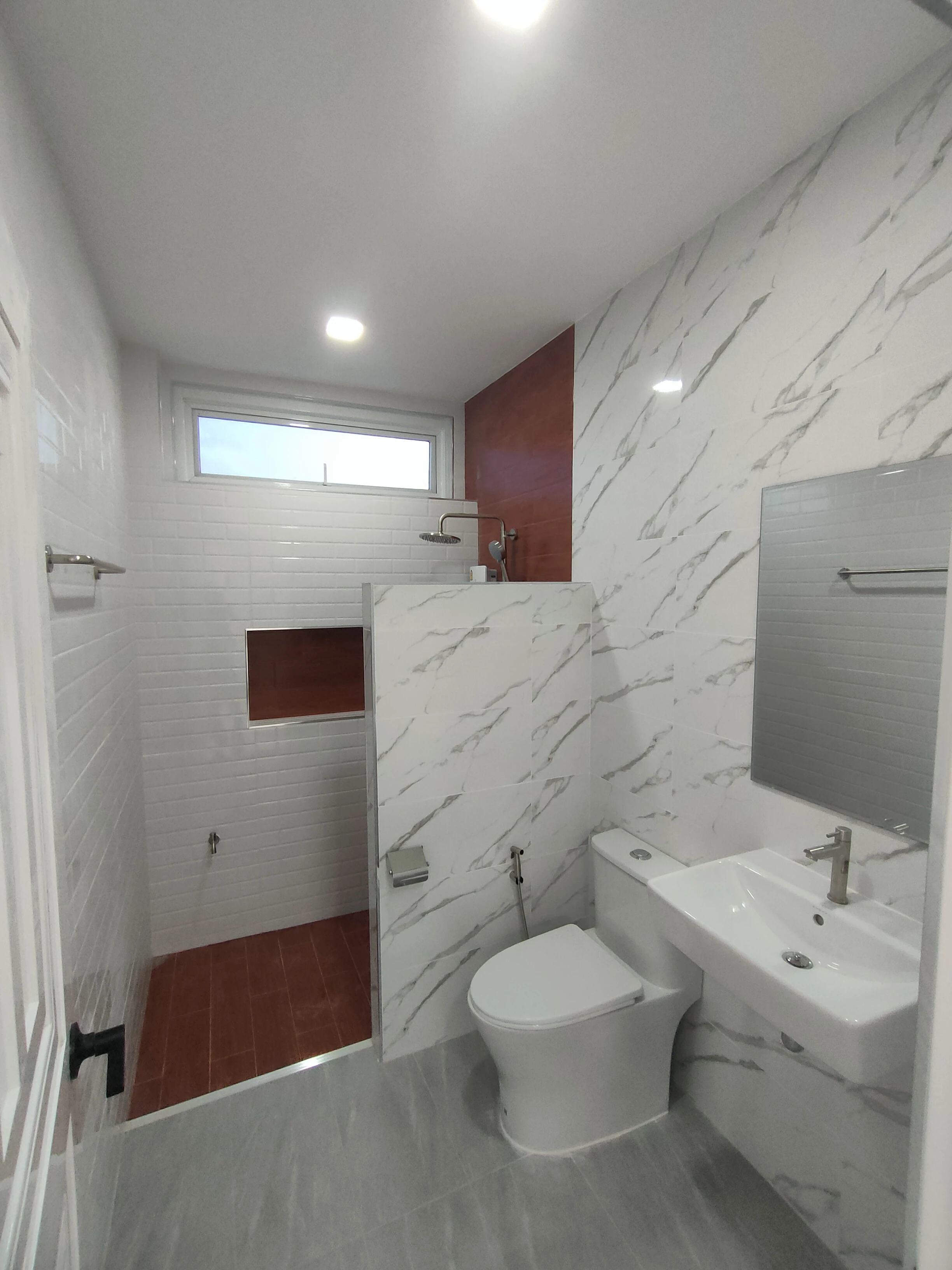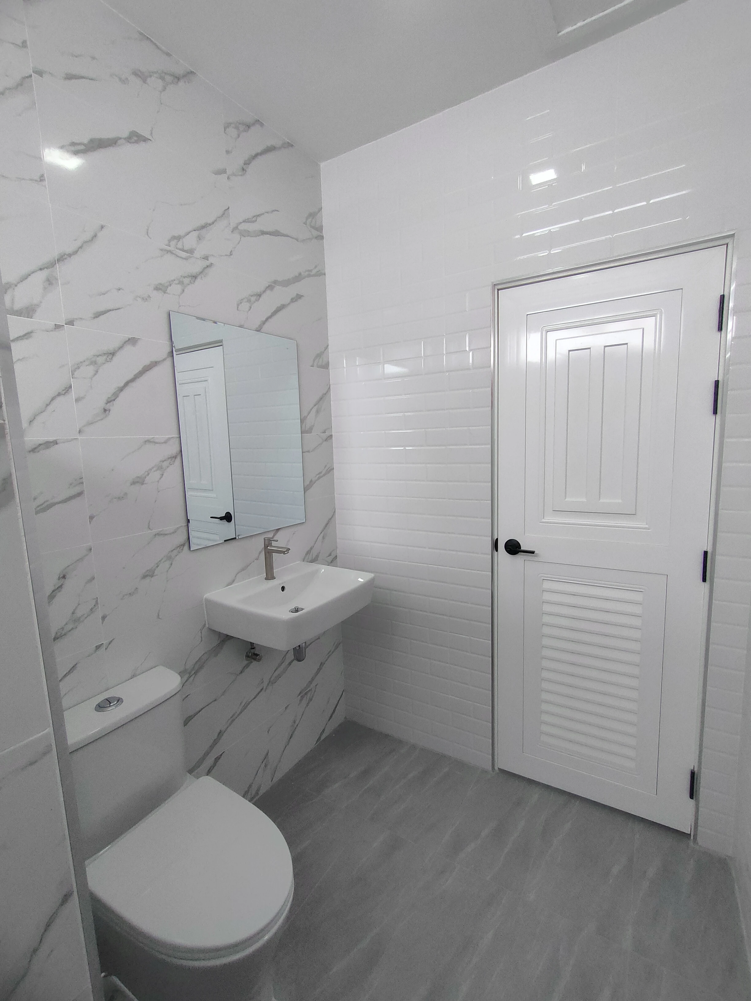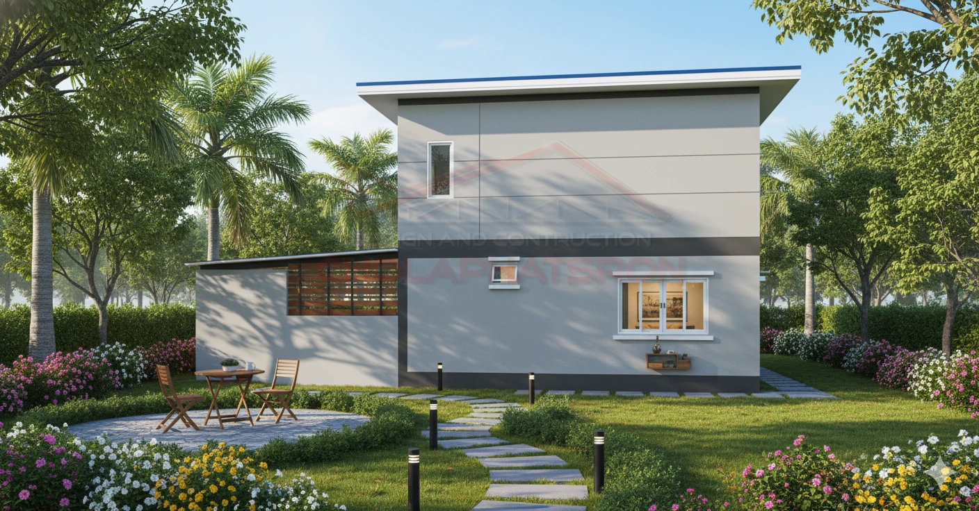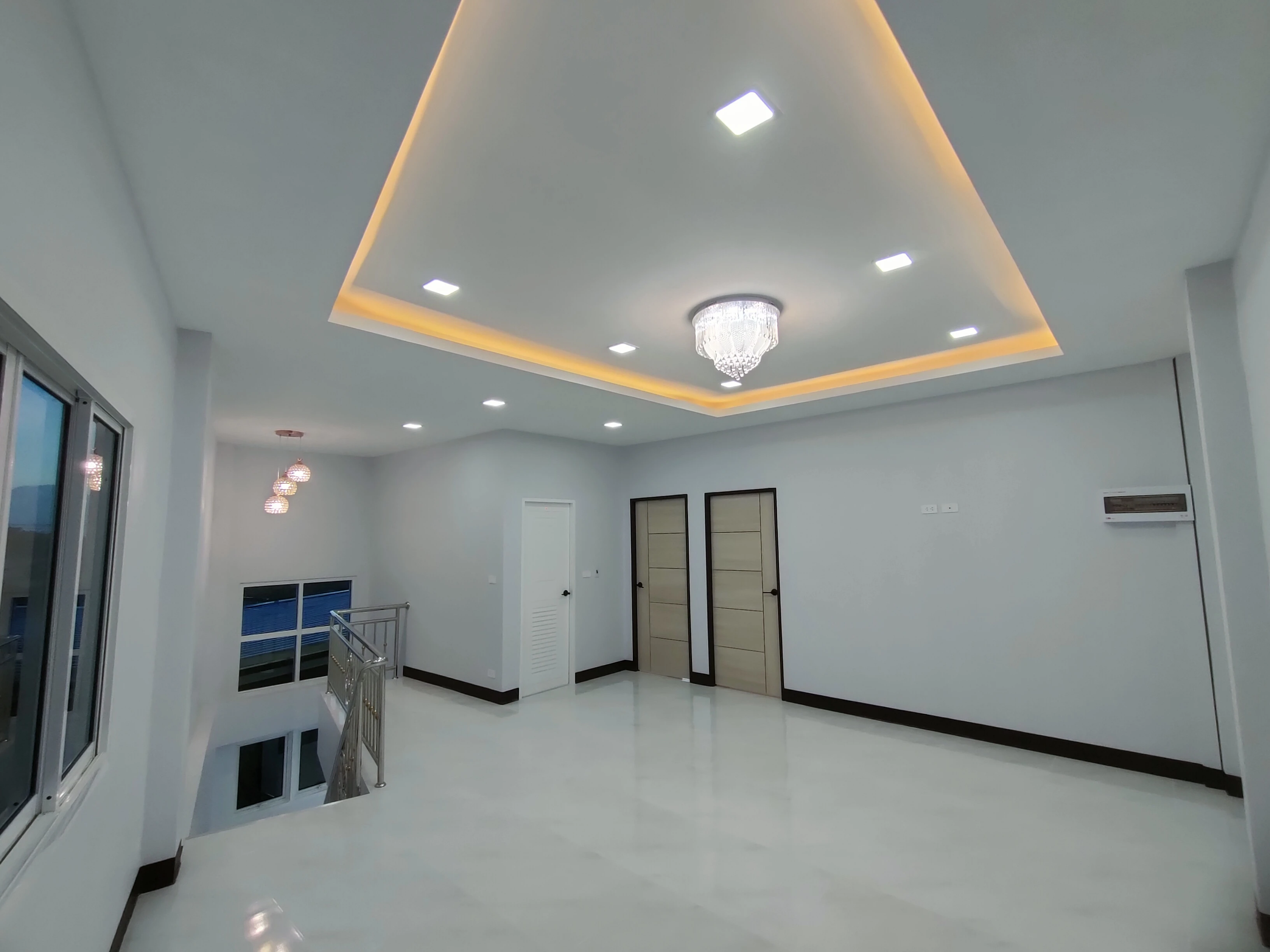 บ้านสองชั้นสไตล์โมเดิร์น พื้นที่ใช้สอย 140 ตร.ม. ที่จัดพื้นที่ห้องโถงด้านล่างเป็นร้านขายของ และมีห้องนอน 1 ห้อง ห้องน้ำ 1 ห้อง และด้านบนแบ่งเป็น 2 ห้องนอน 1 ห้องน้ำ 1 ห้องนั่งเล่น