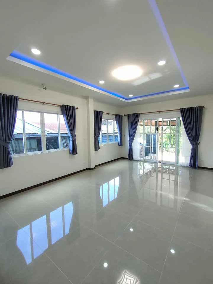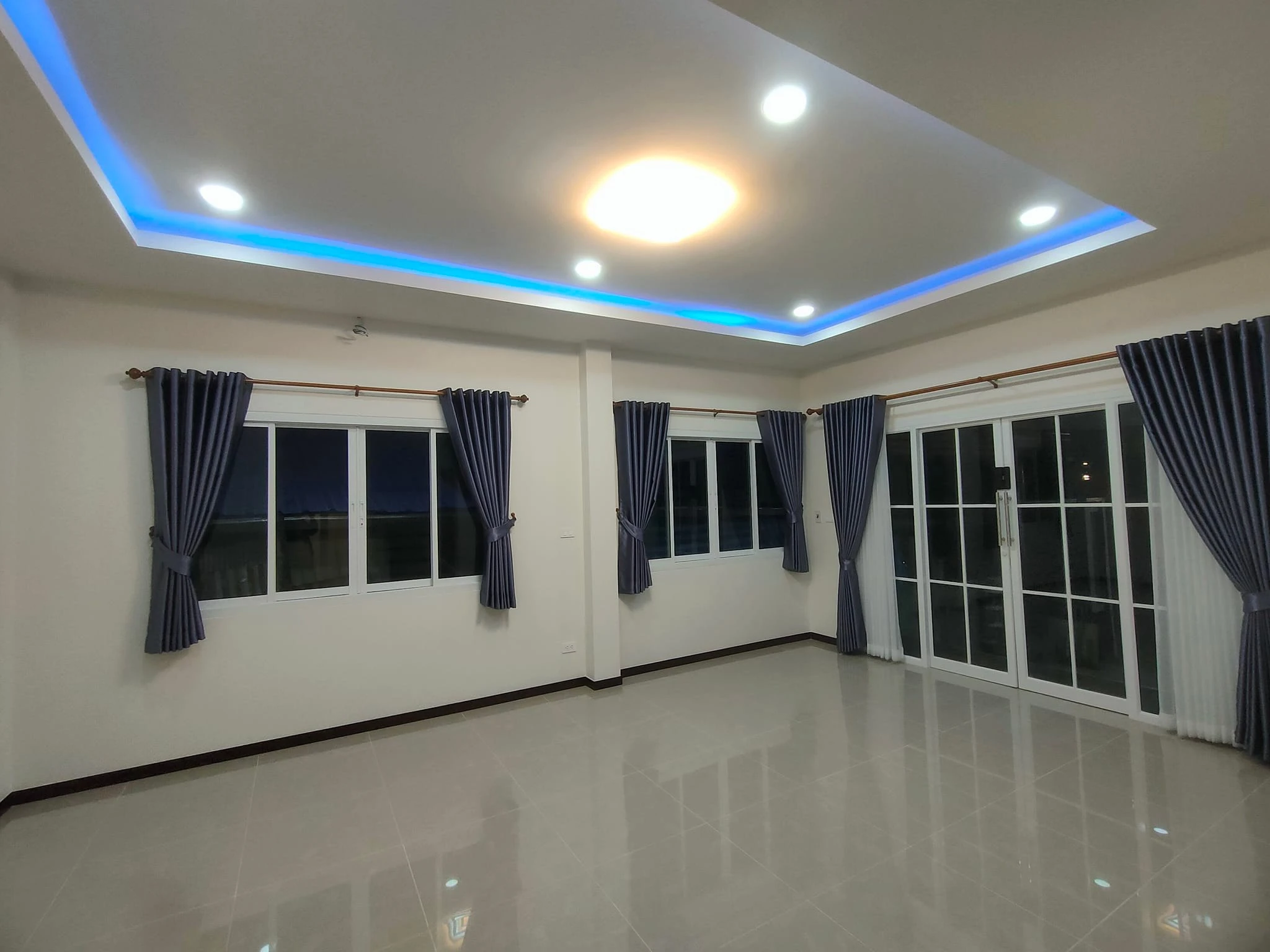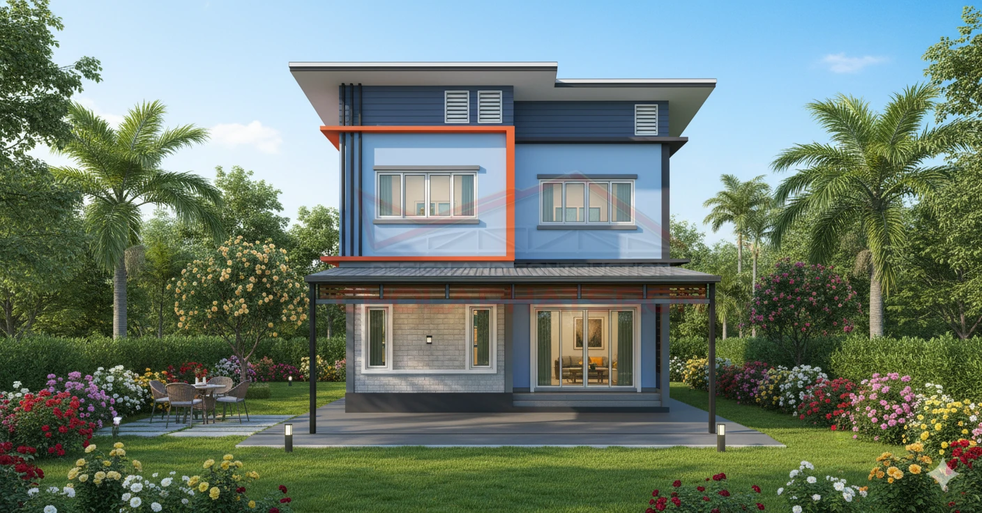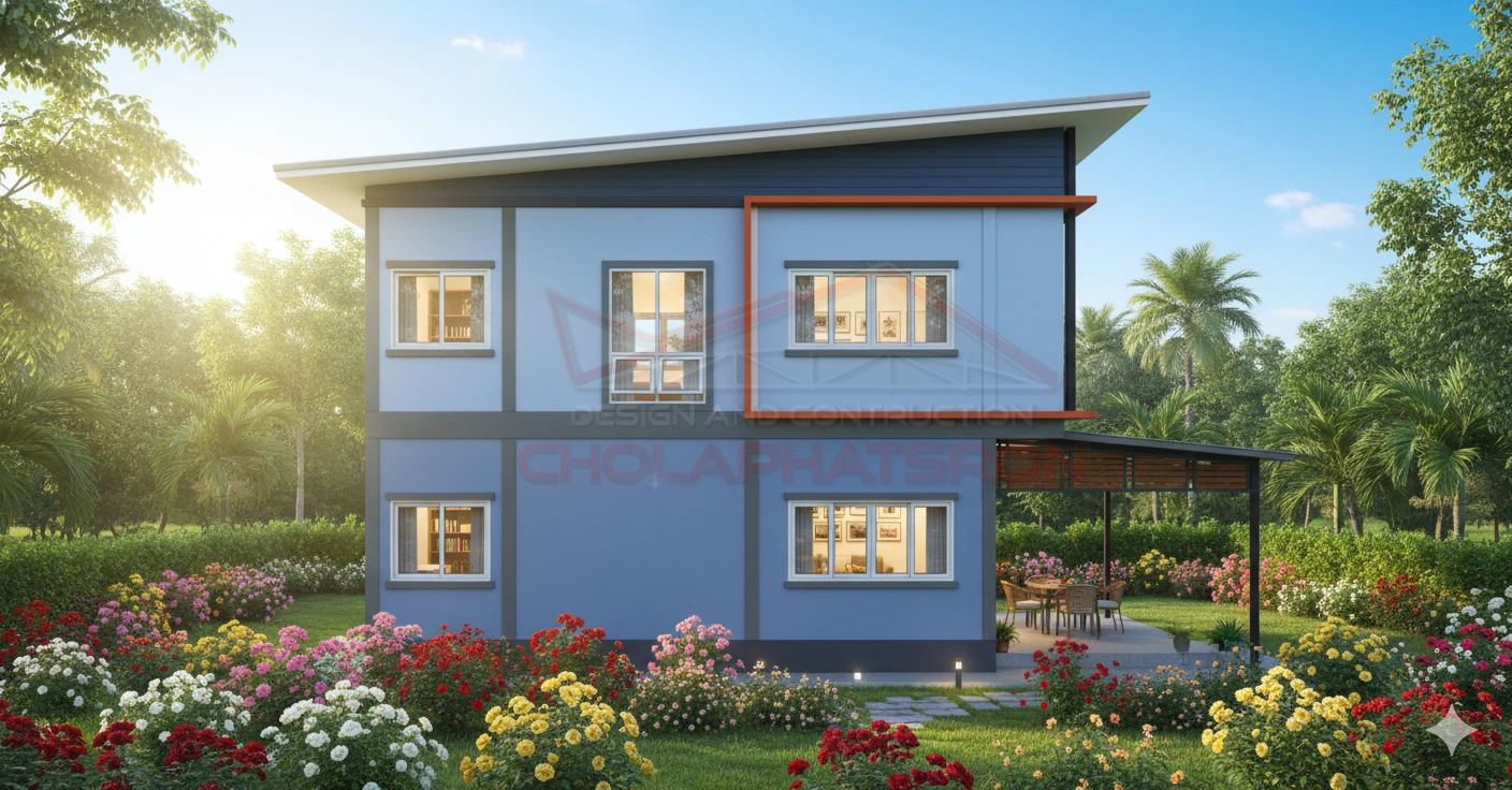 แบบบ้านสองชั้นสไตล์โมเดิร์น แบ่งเป็น 4 ห้องนอน 2 ห้องน้ำ 1 ห้องครัว 1 ห้องรับแขก 1 ที่จอดรถ