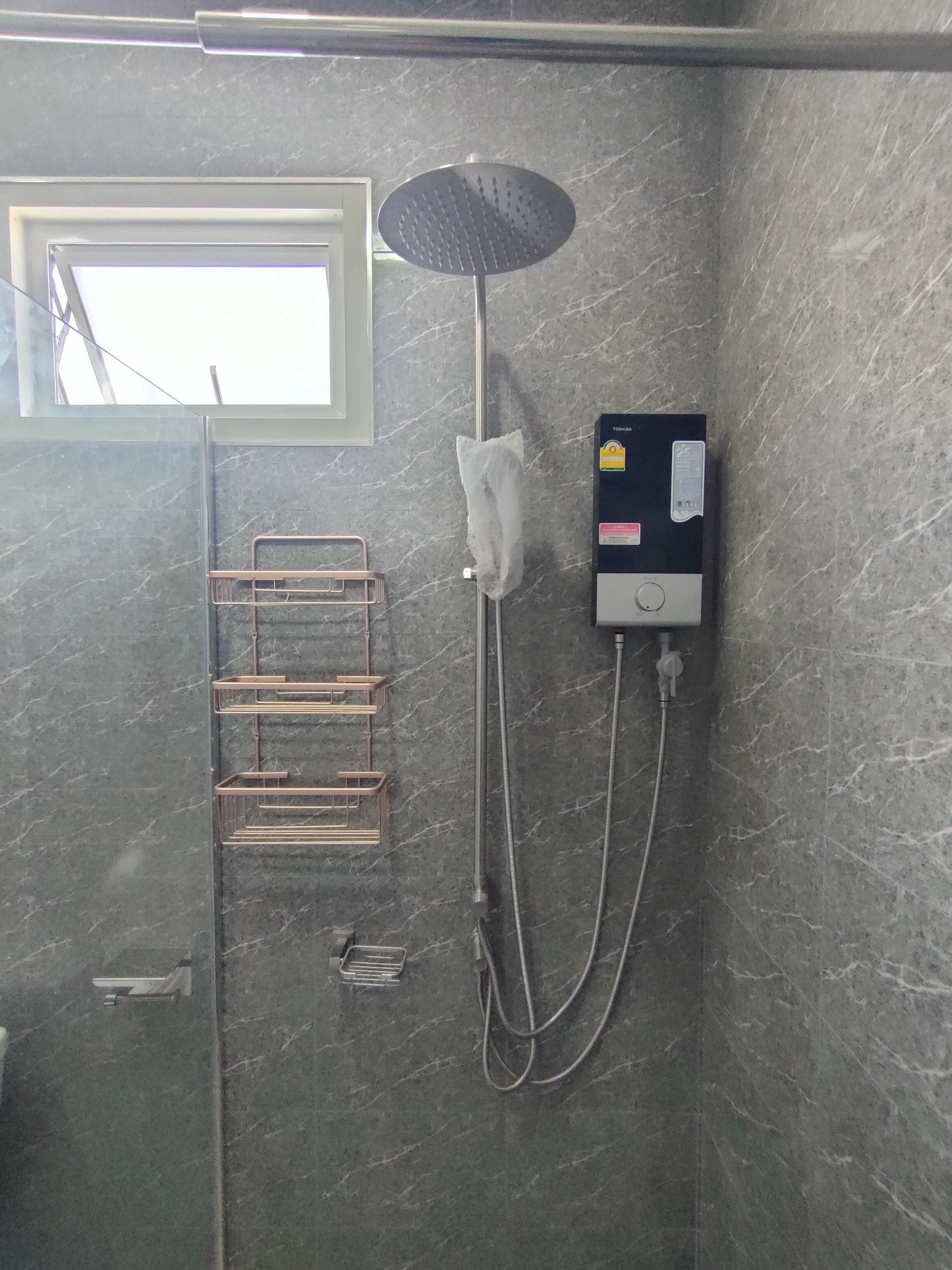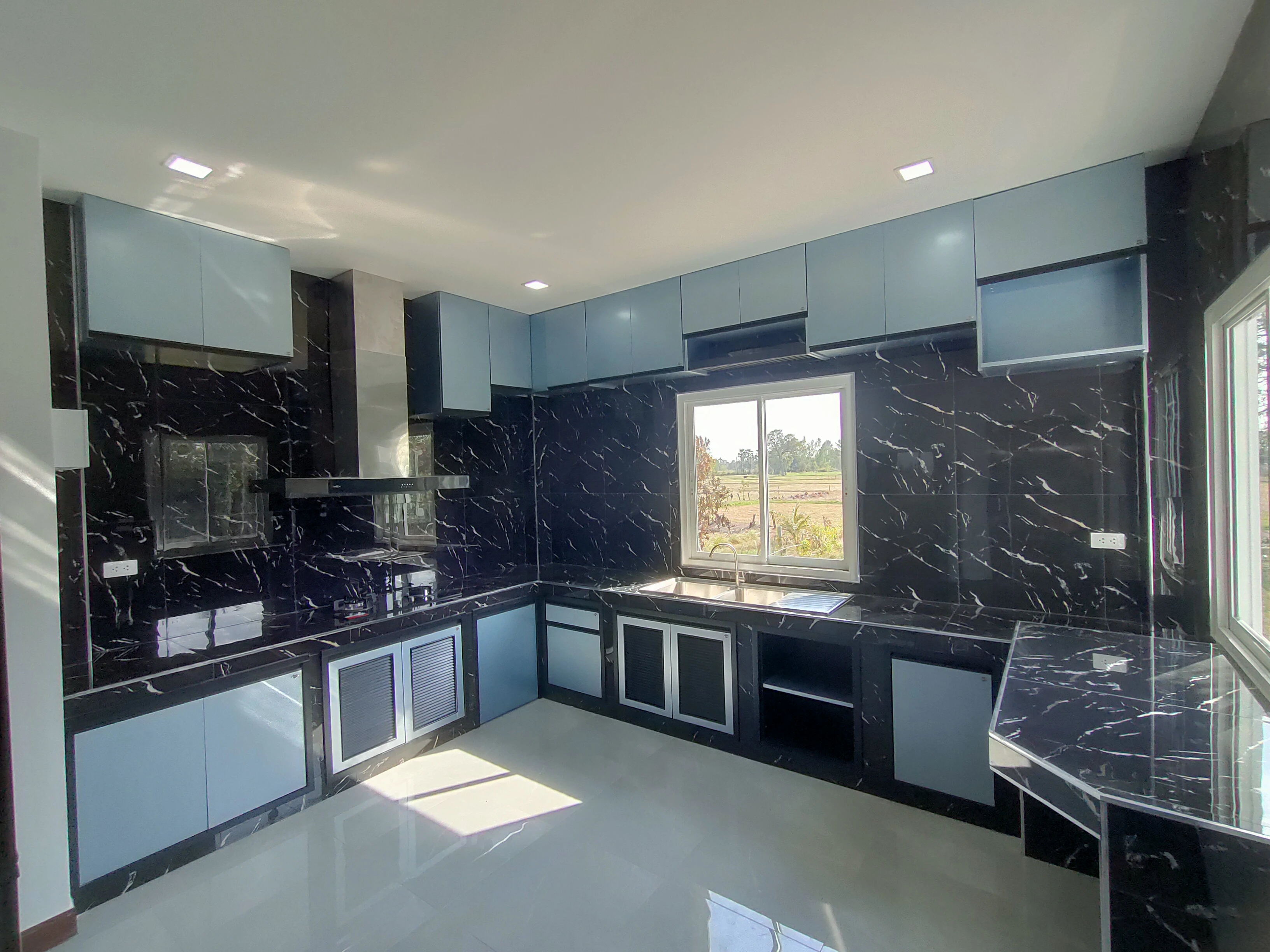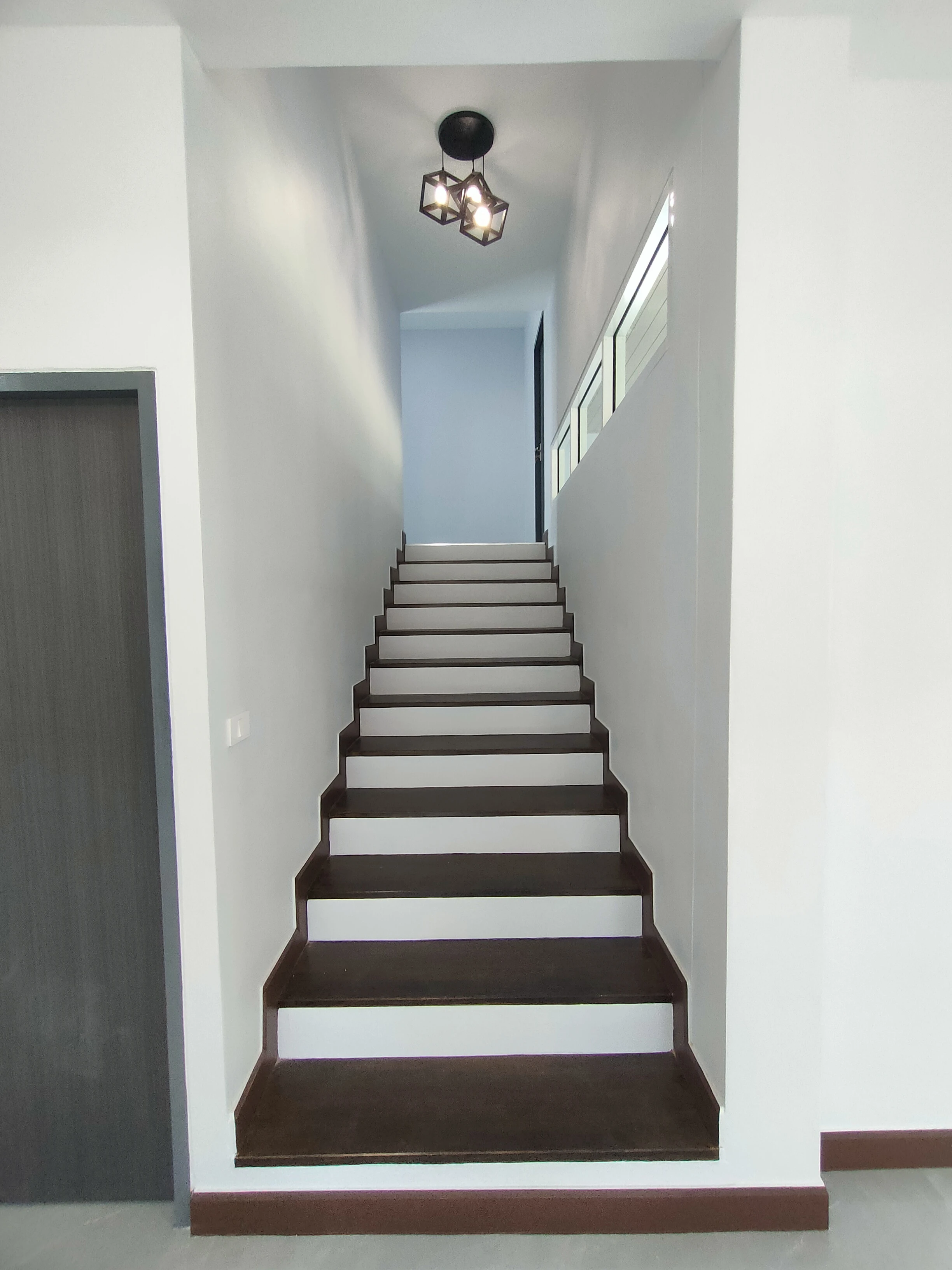 บ้านชั้นครึ่งสไตล์โมเดิร์นร่วมสมัย ที่แบ่งเป็น 2 ห้องนอน 1 ห้องทำงาน 1 ห้องนั่งเล่น 1 ห้องพระ 1 ห้องครัว 1 ห้องน้ำ และสามารถจอดรถได้ 2 คัน