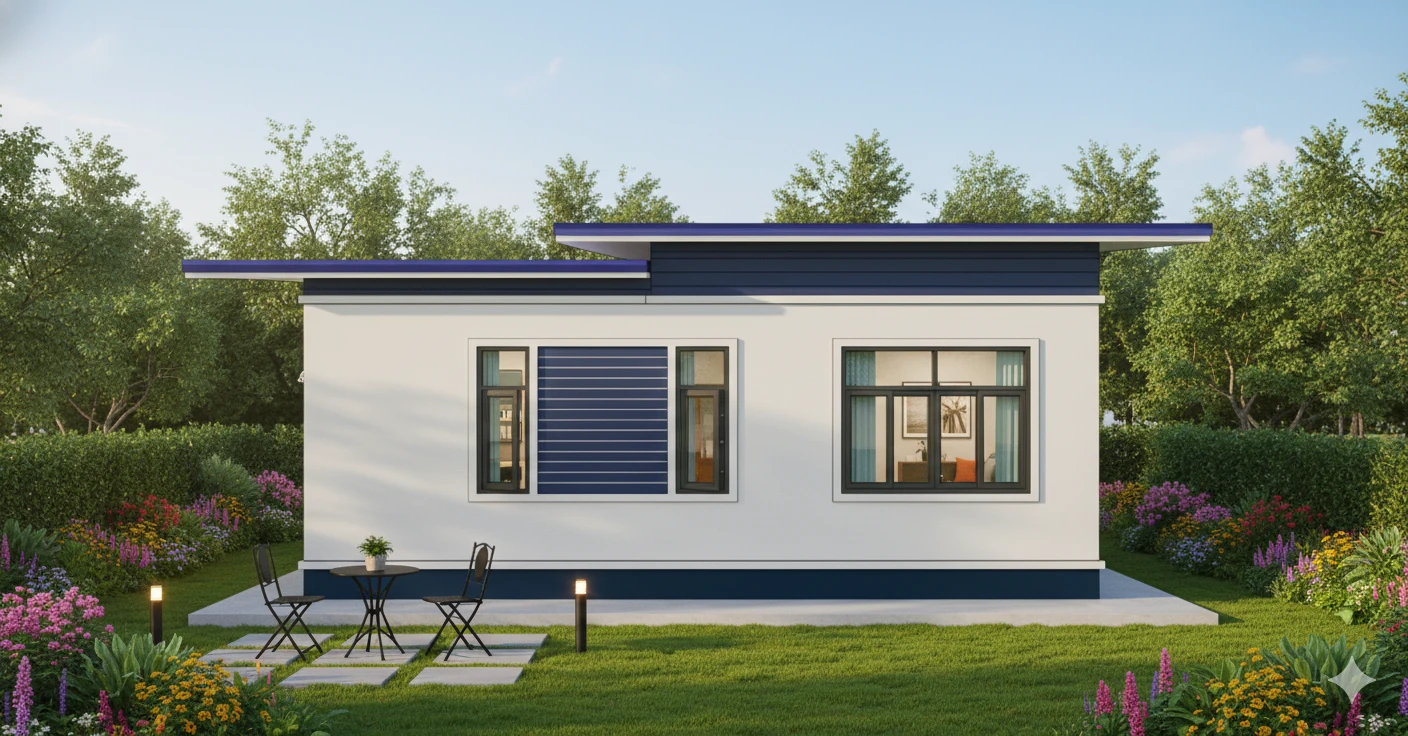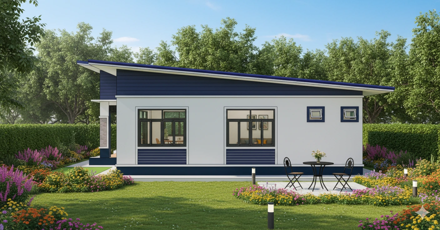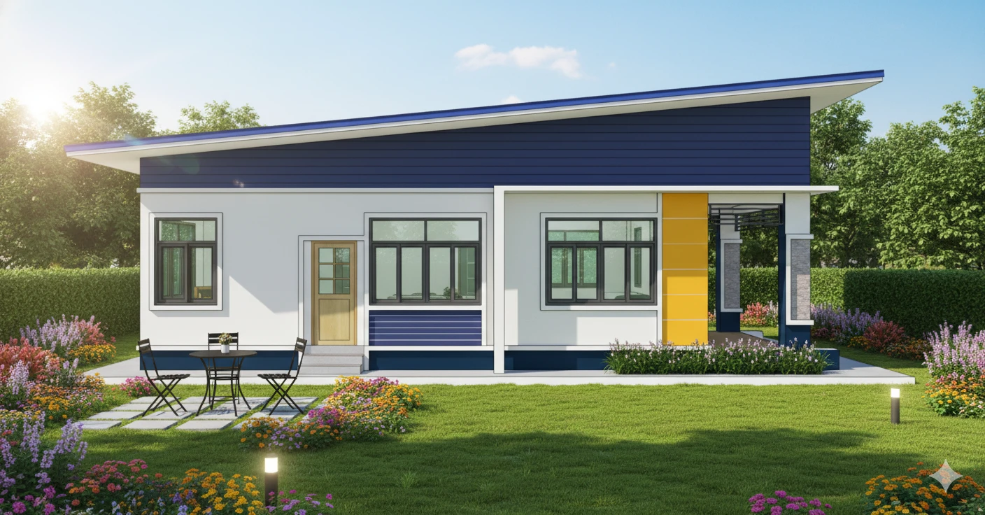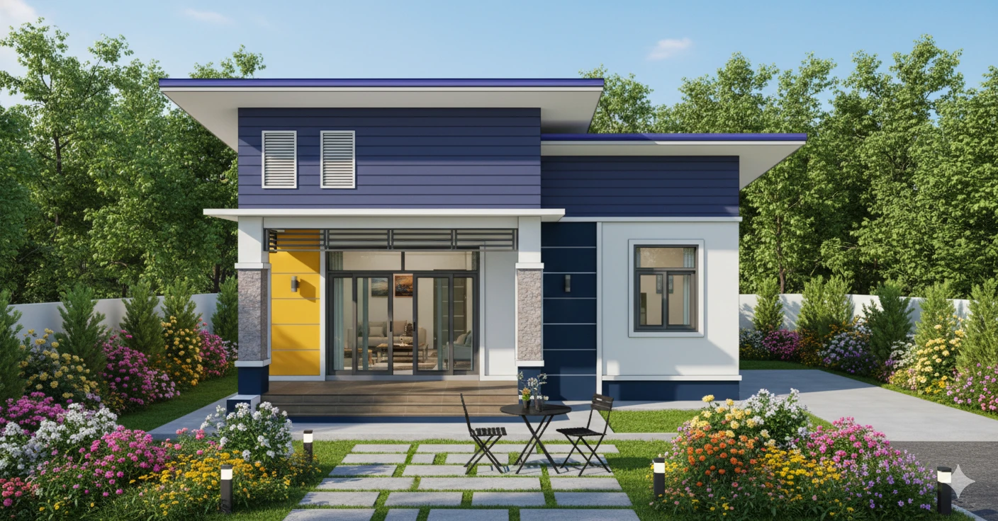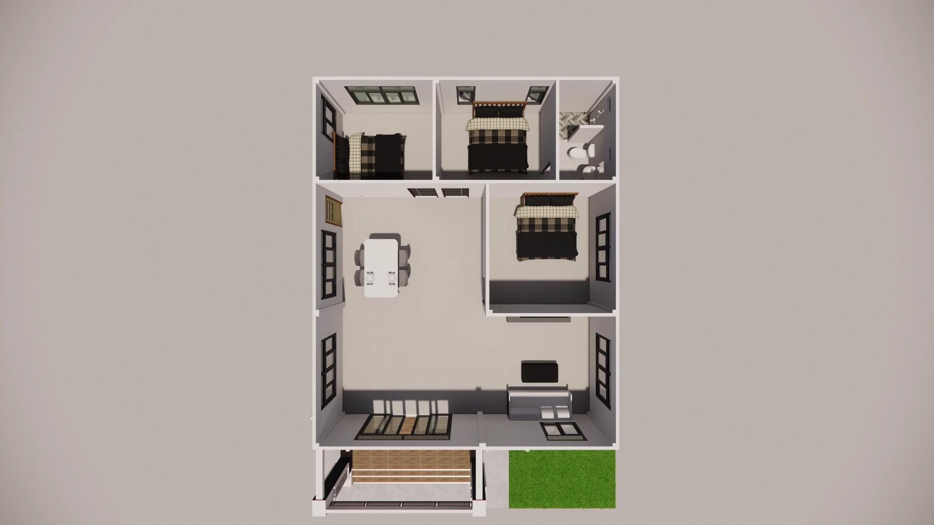 แบบบ้านชั้นเดียวสไตล์โมเดิร์น โดยแบ่งเป็น 3 ห้องนอน 1 ห้องน้ำ 1 ห้องนั่งเล่น