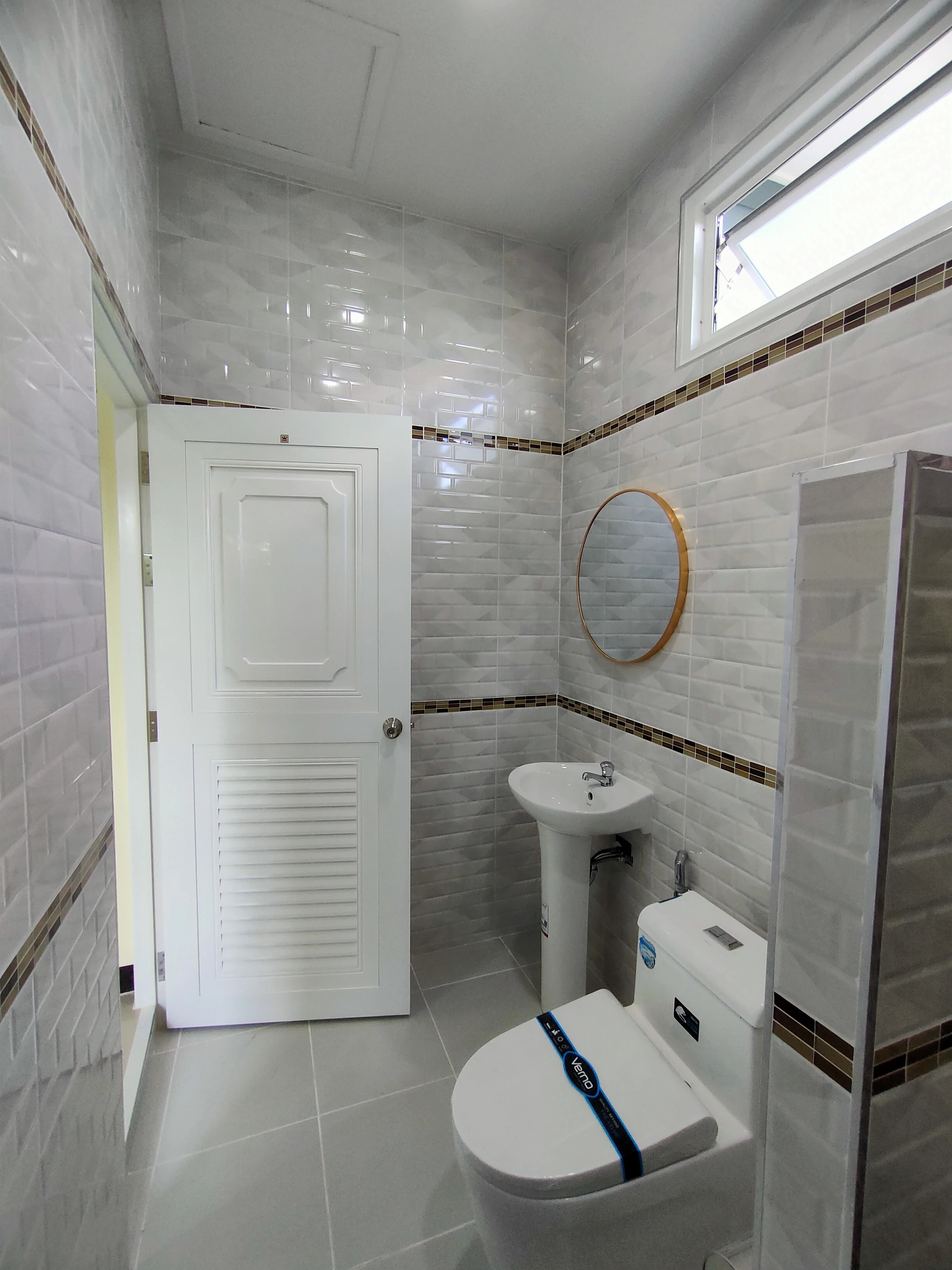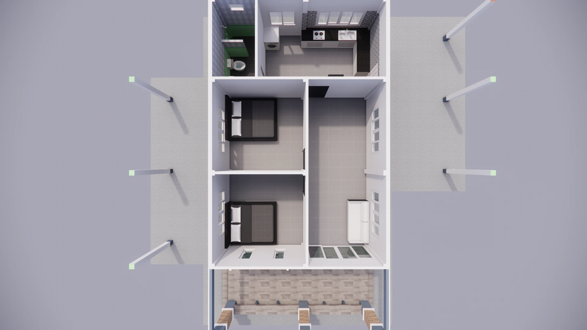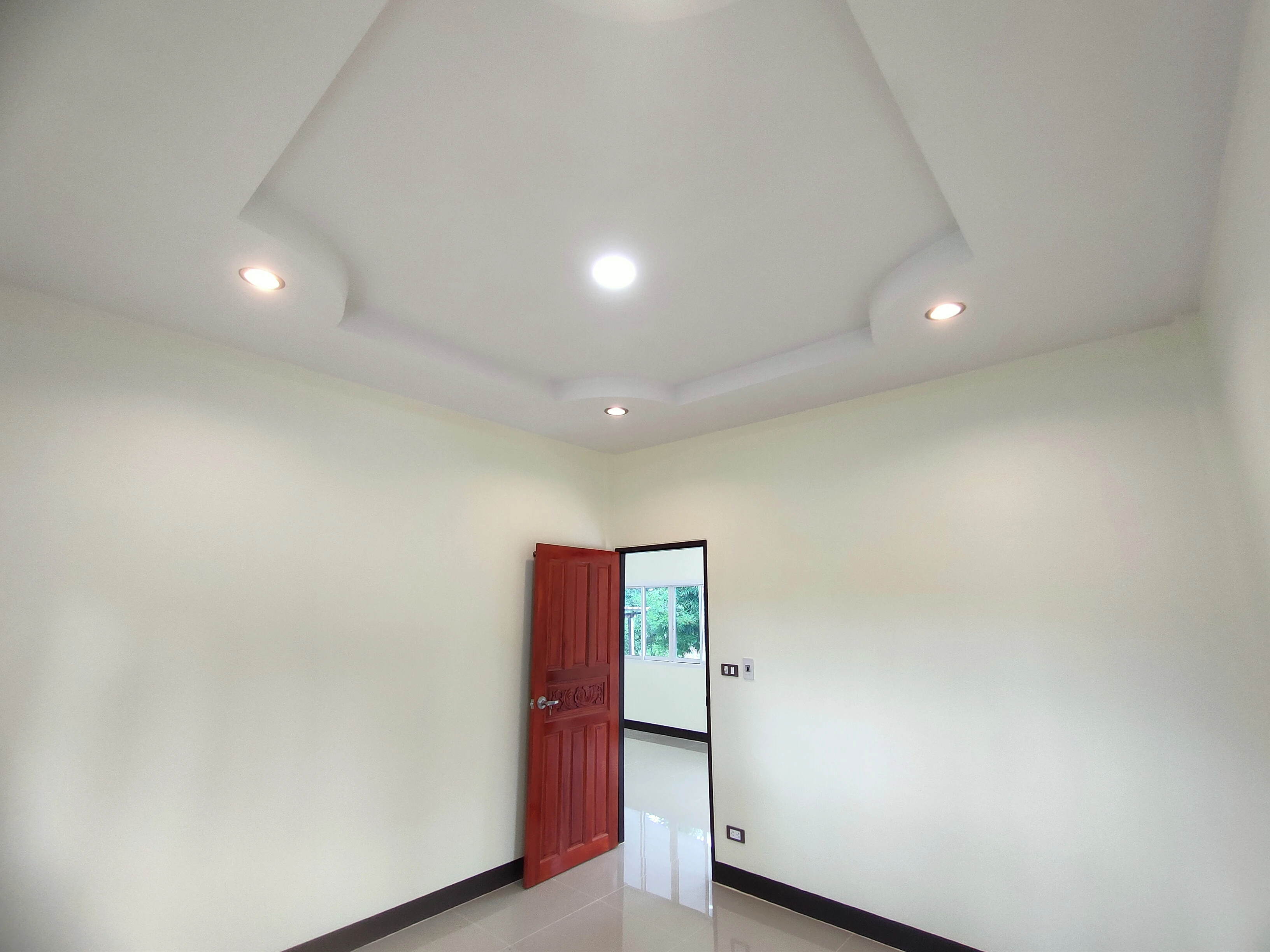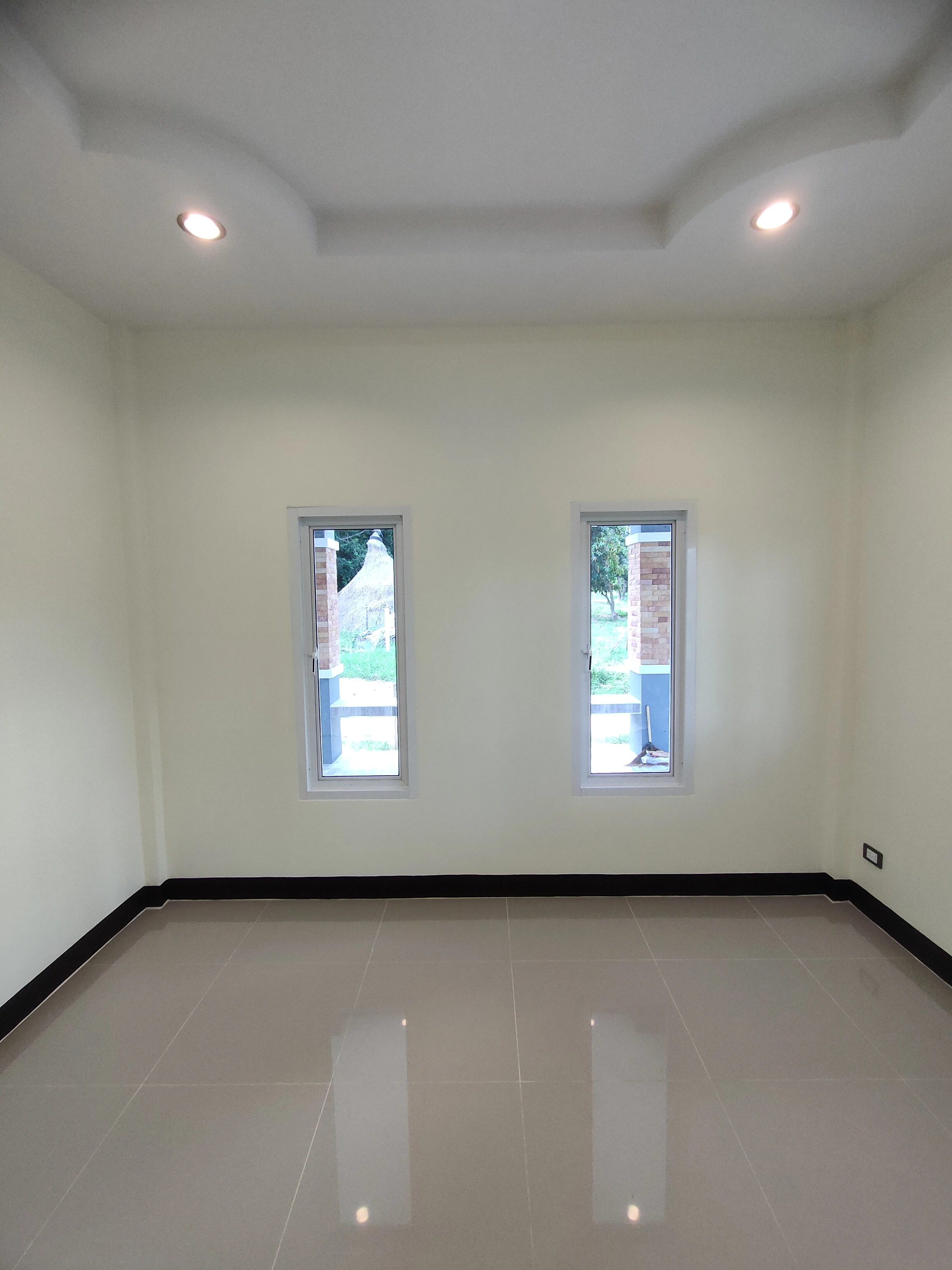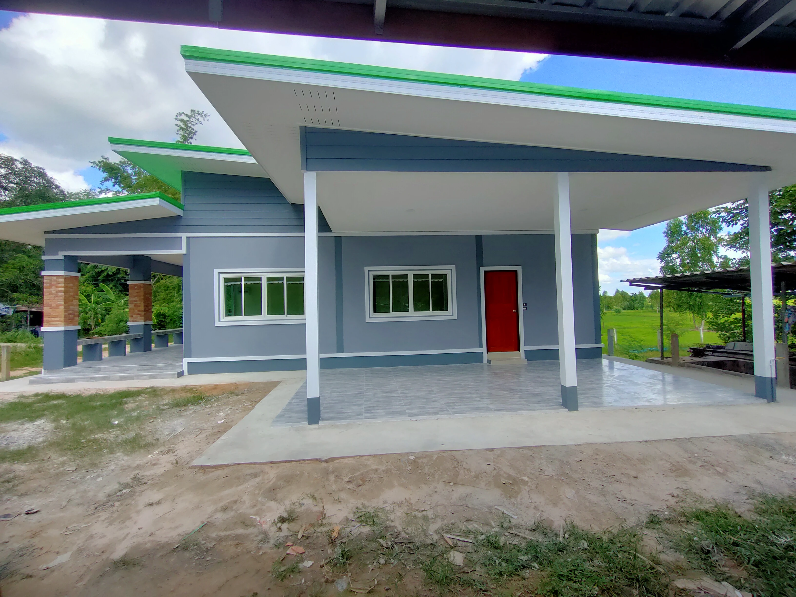 แบบบ้านสไตล์โมเดิร์นชั้นเดียว พื้นที่ใช้สอย 90 ตร.ม. โดยแบ่งเป็น 2 ห้องนอน 1 ห้องน้ำ 1 ห้องครัว 1 ห้องนั่งเล่น และพื้นที่จอดรถด้านข้าง