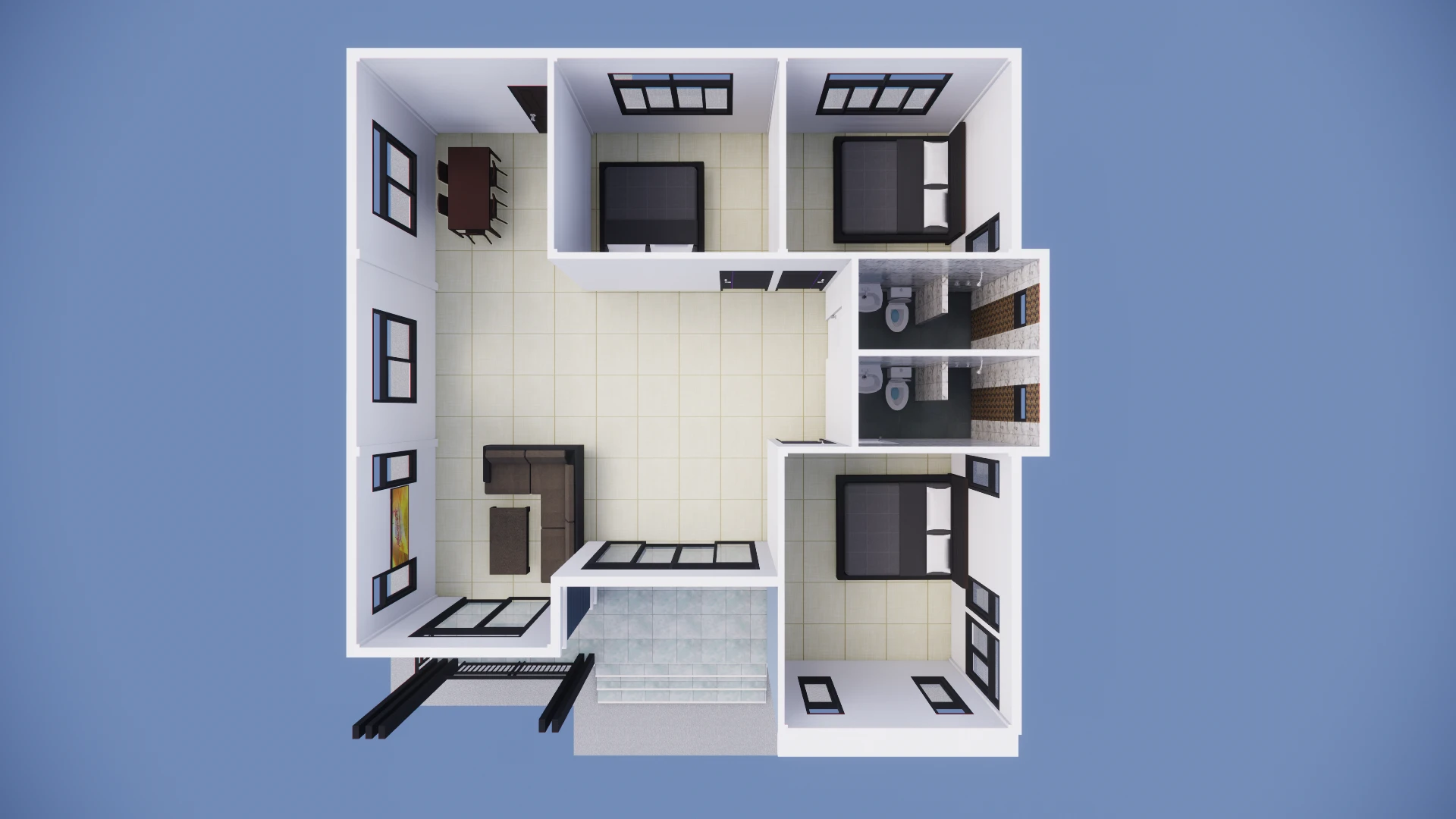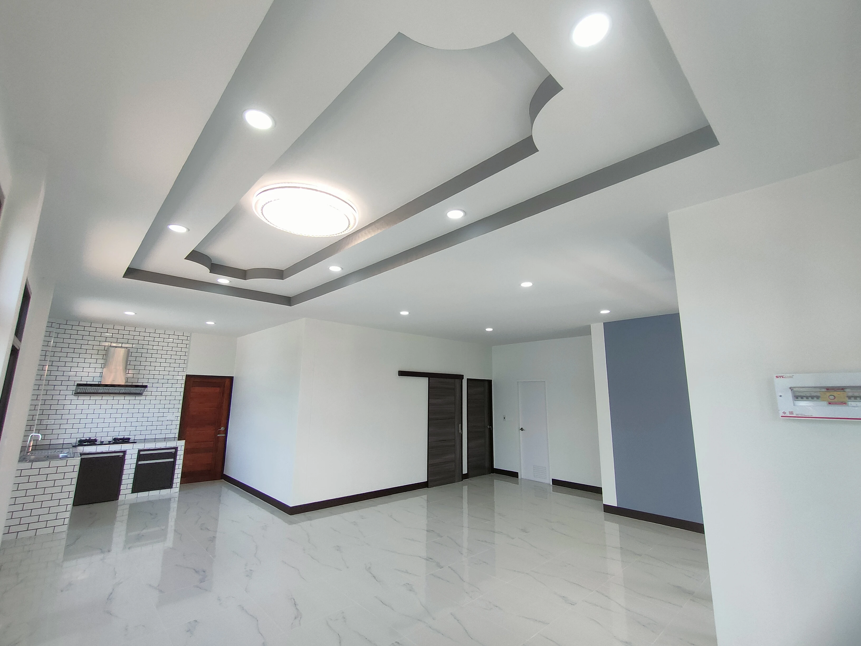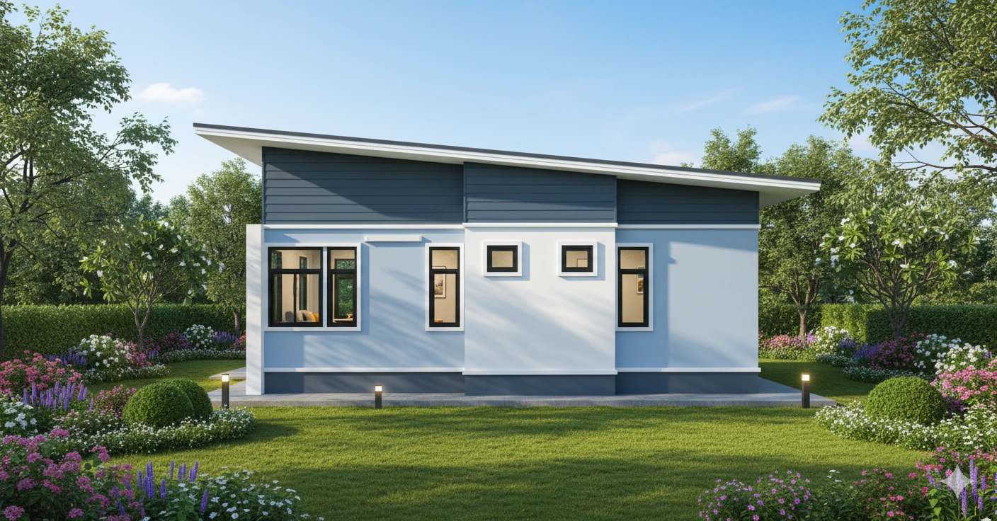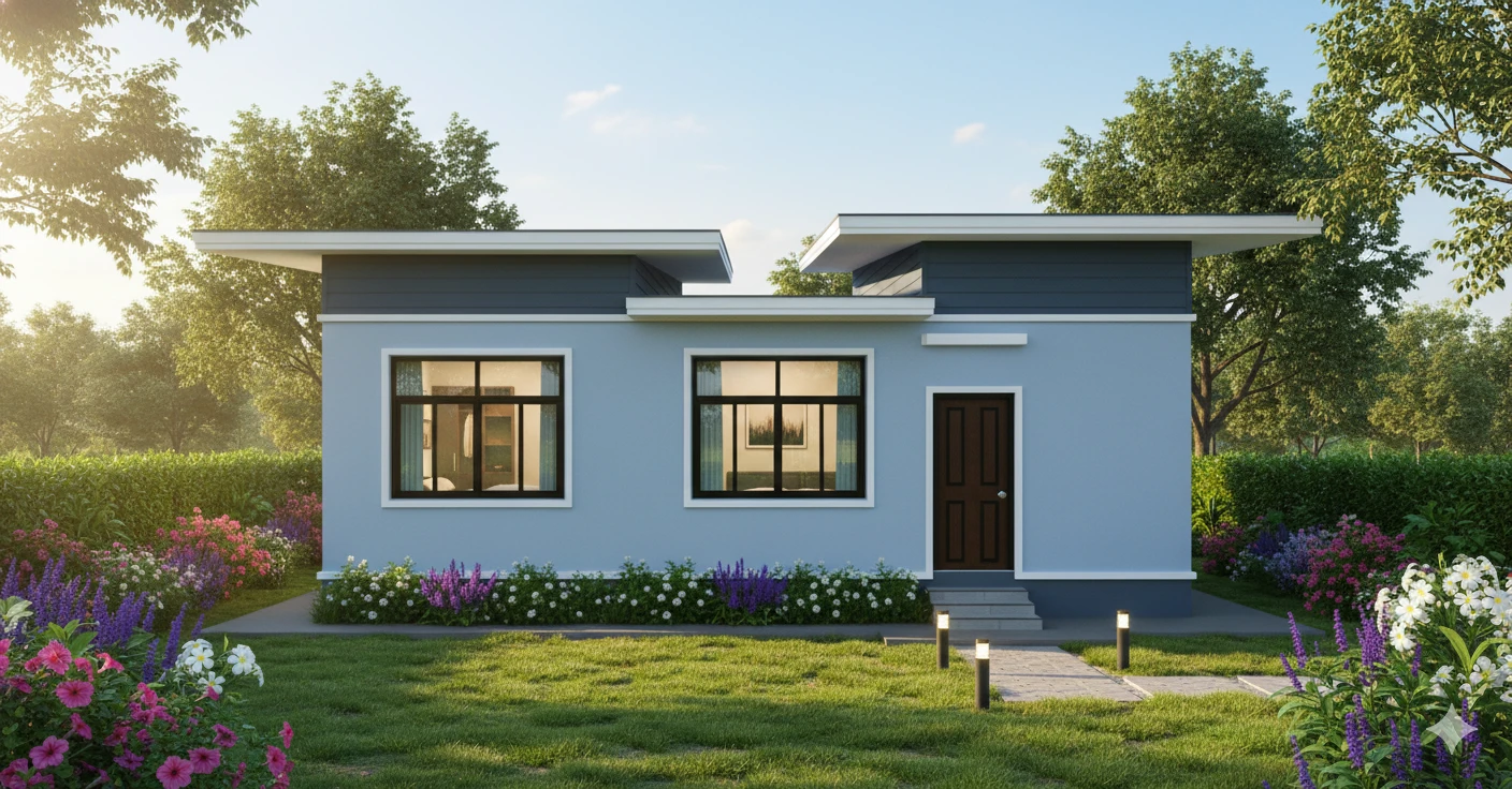 แบบบ้านชั้นเดียวสไตล์โมเดิร์น โดยแบ่งเป็น 3 ห้องนอน 2 ห้องน้ำ 1 ห้องนั่งเล่น 1 ห้องรับประทานอาหาร