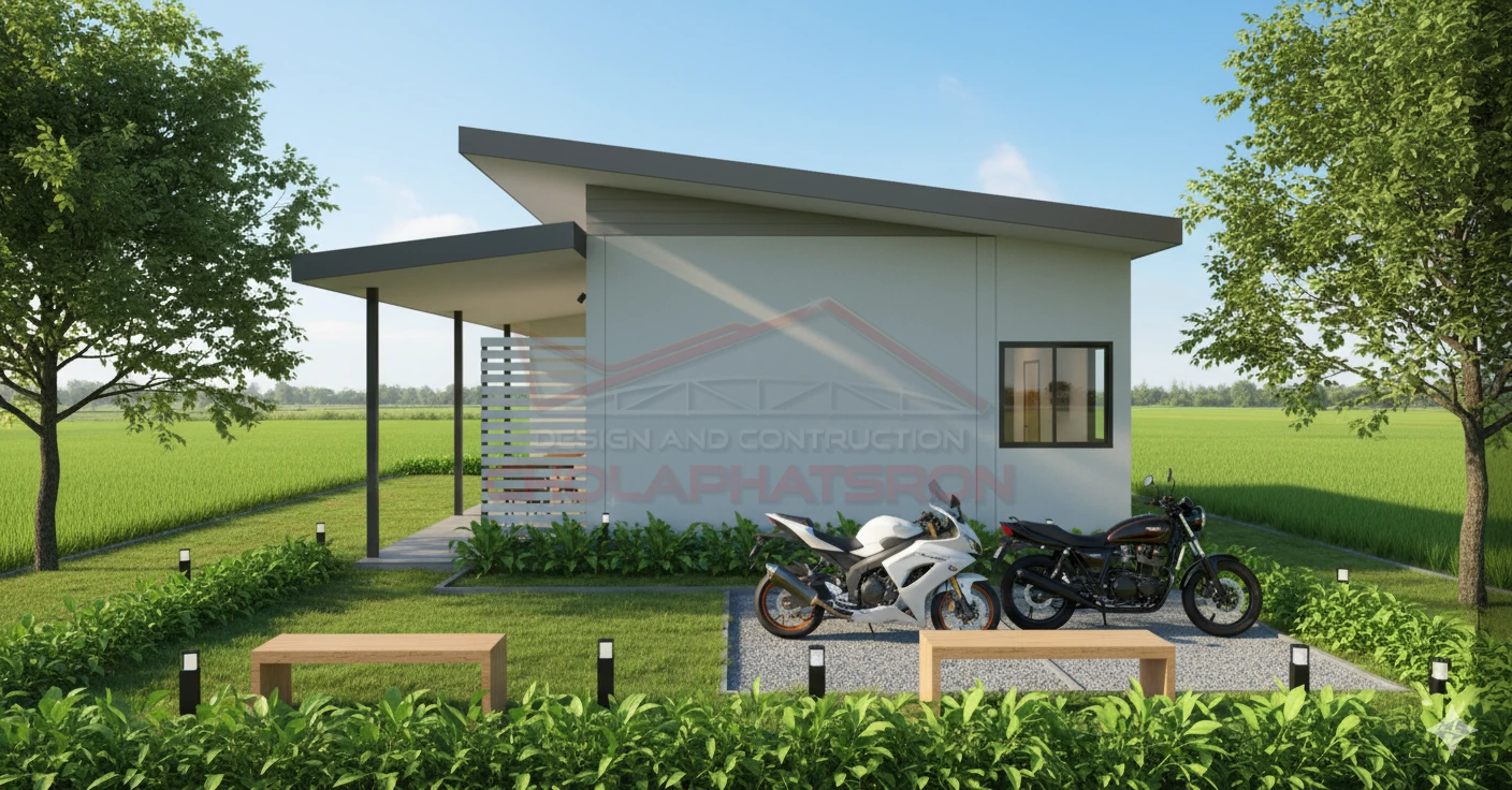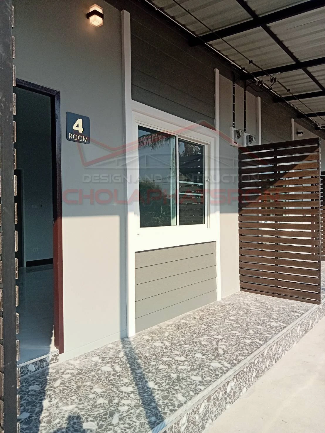 หอพักสไตล์โมเดิร์นที่ออกแบบมาได้อย่างเรียบง่ายอยู่สบาย ที่แบ่งใช้พื้นที่ภายนอกได้อย่างดี มีห้องน้ำในตัวทุกห้องและมีระเบียงกว้างขวาง ขนาดห้องรวมระเบียง 4x5.5 ม.