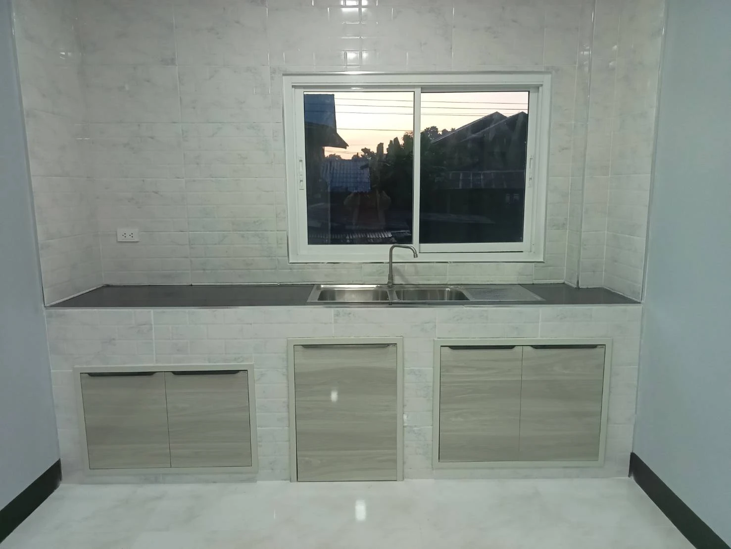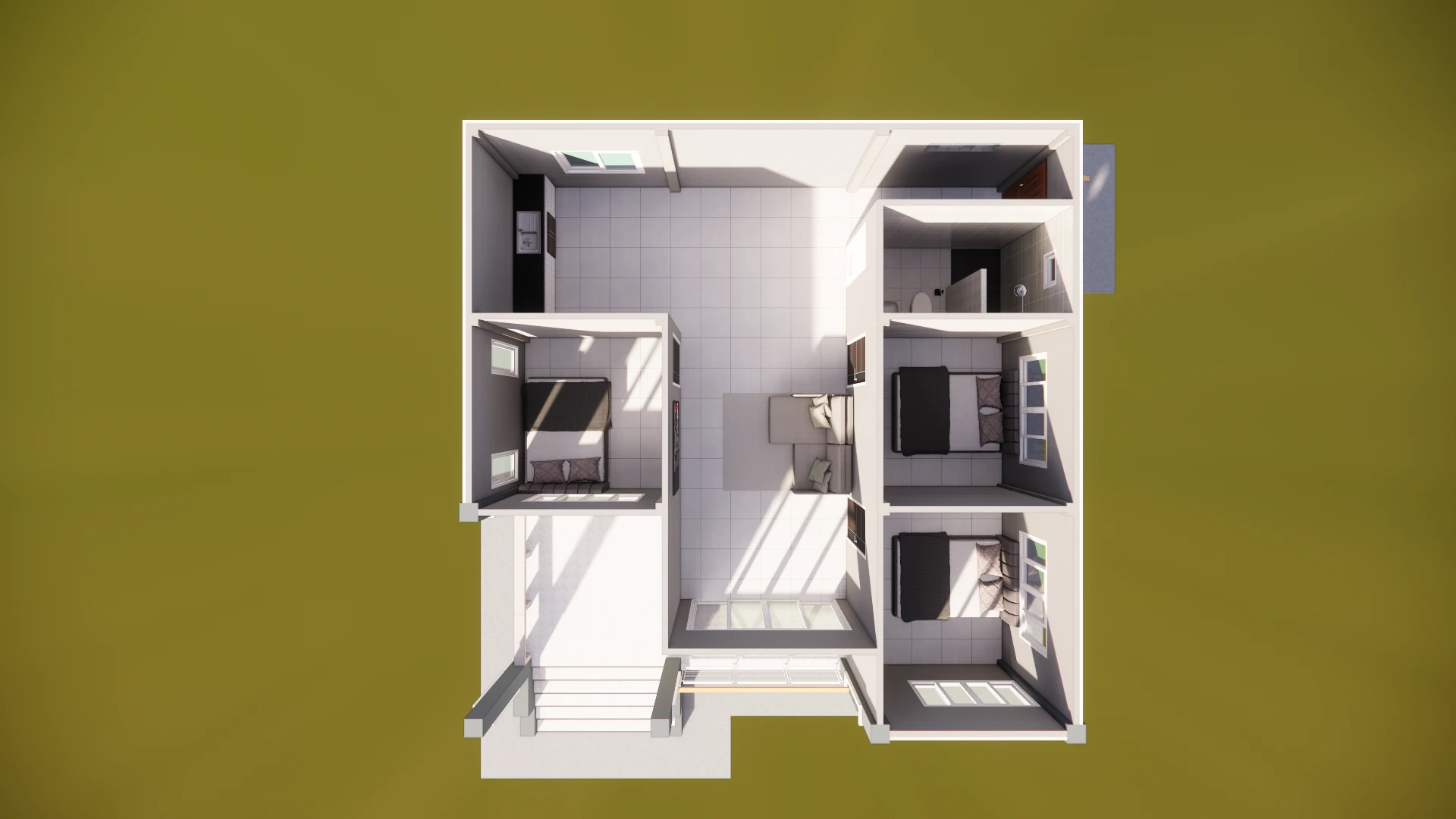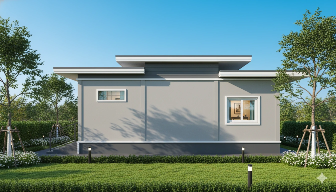 บ้านชั้นเดียวสไตล์โมเดิร์น พื้นที่ใช้สอย 95 ตร.ม. โดยแบ่งเป็น 3 ห้องนอน 1 ห้องน้ำ 1 ห้องครัว 1 ห้องนั่งเล่น